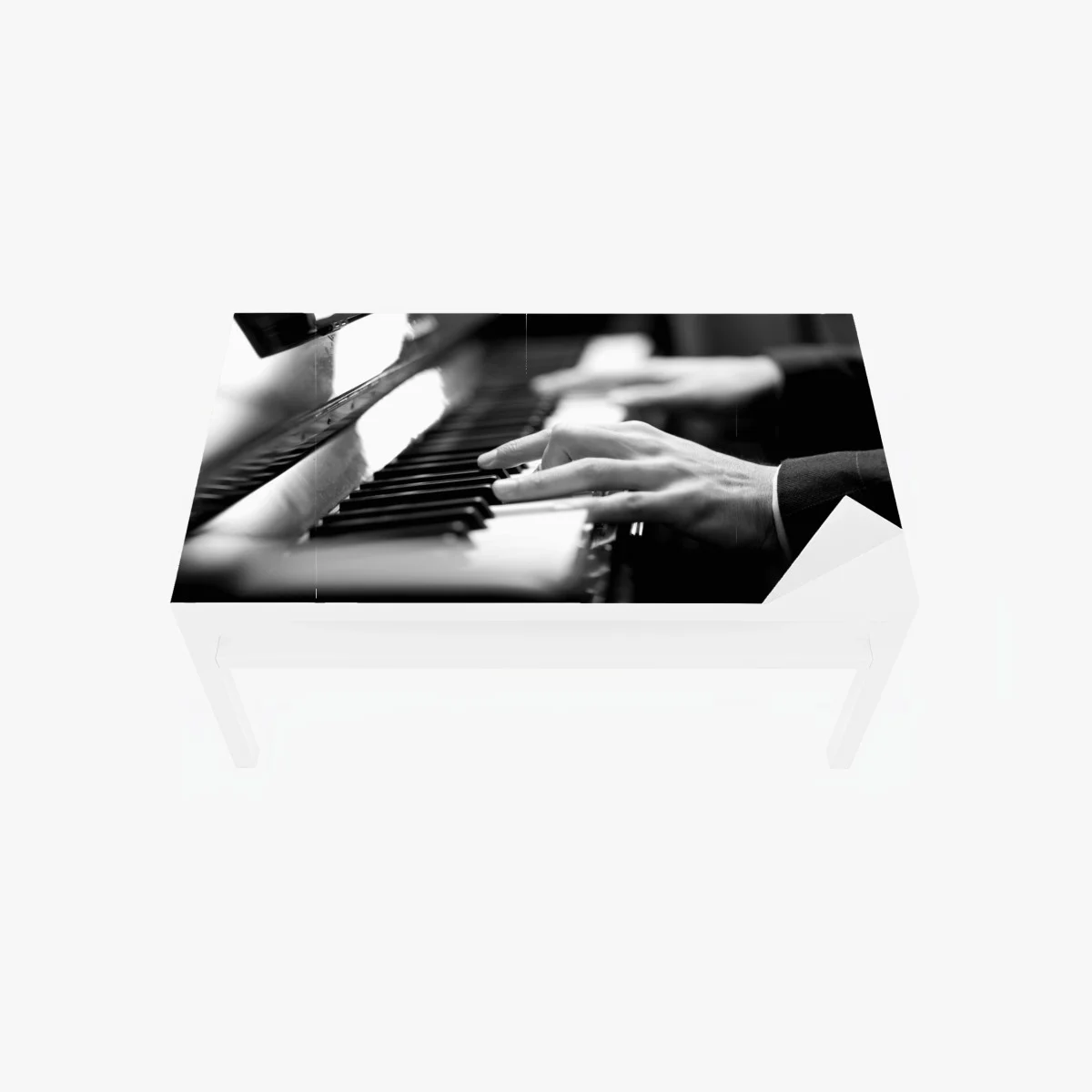 Tischaufkleber und Schreibtischaufkleber Intime hände auf klaviertasten in monochrom