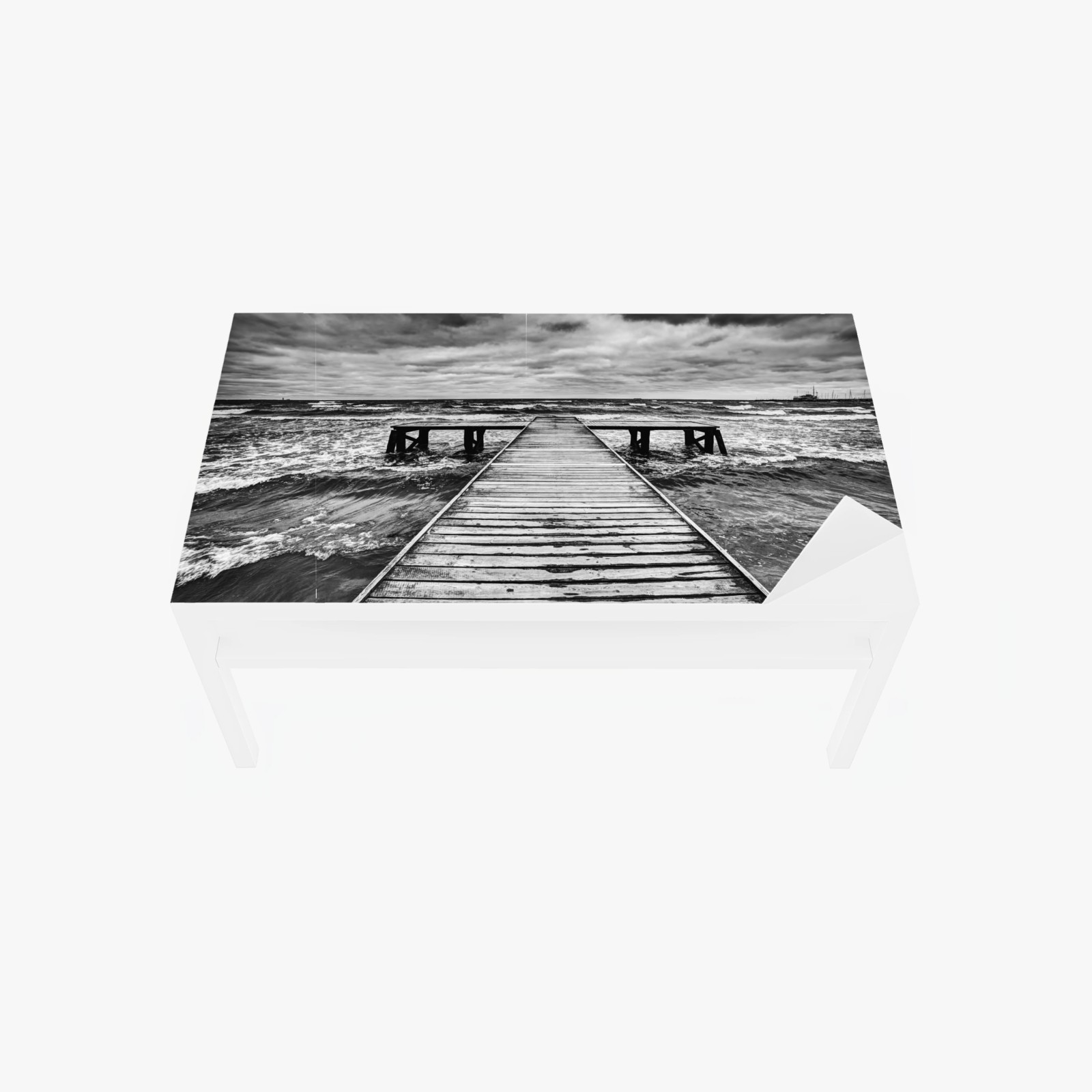 Tischaufkleber und Schreibtischaufkleber Dramatischer schwarzweiß-steg in stürmischer see
