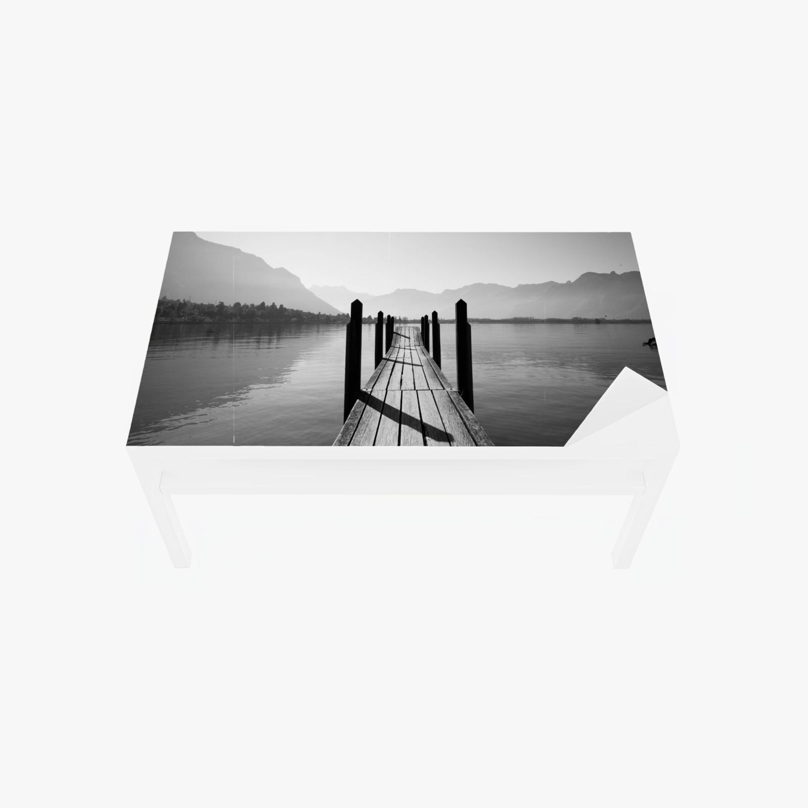 Tischaufkleber und Schreibtischaufkleber Ruhiger steg am see in schwarzweiß