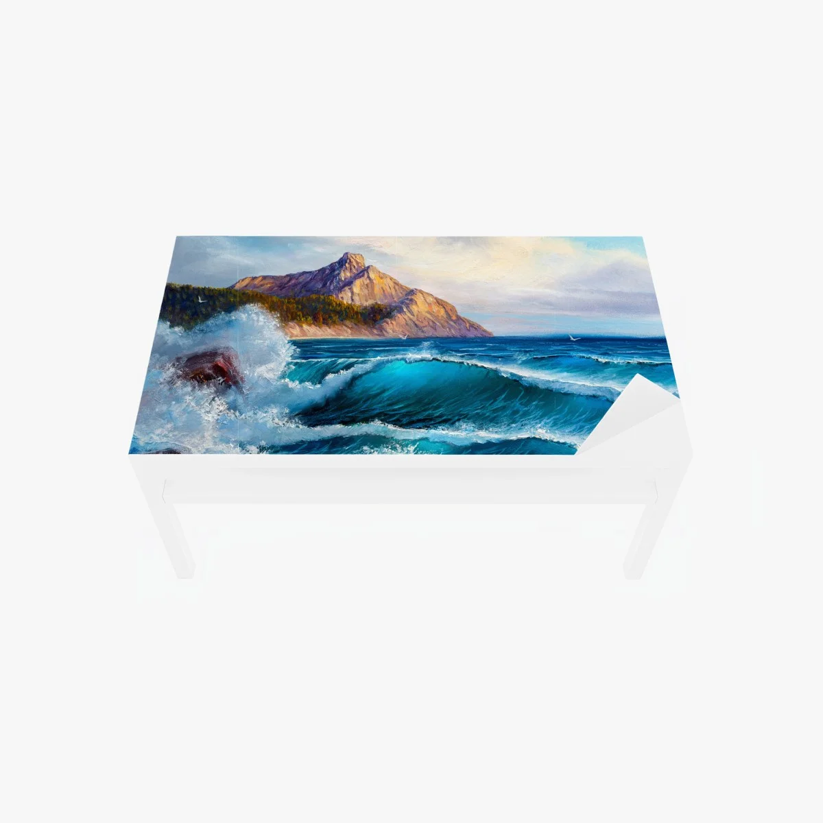 Tischaufkleber und Schreibtischaufkleber Türkisblaue welle - meereslandschaft in öl