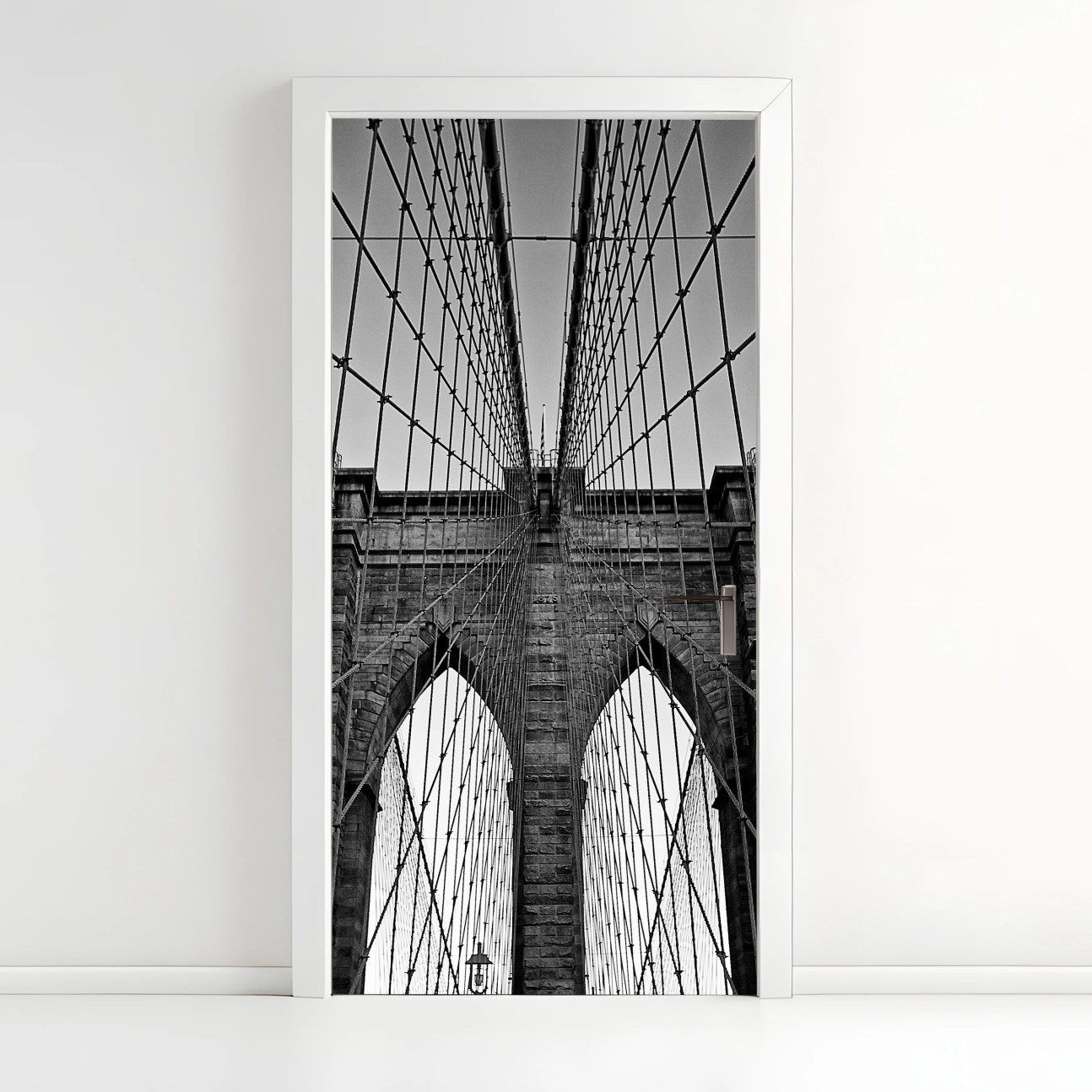 Türaufkleber Symmetrische hängebrücke in schwarzweiß