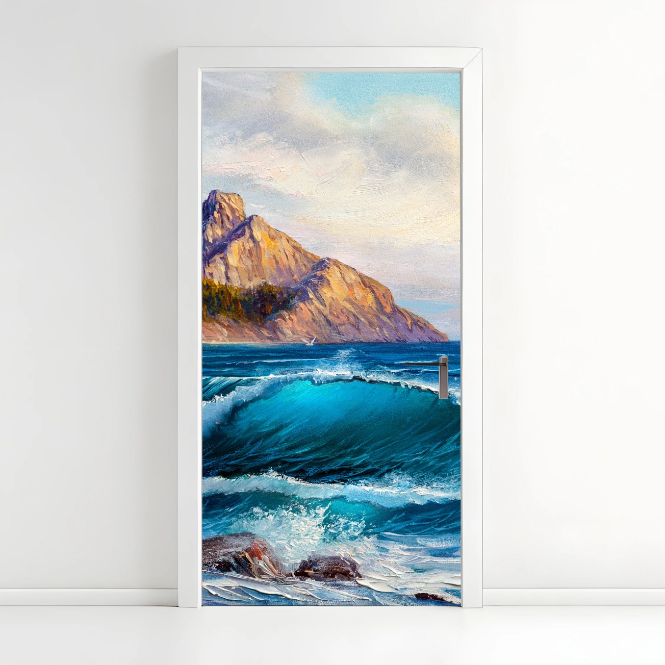 Türaufkleber Türkisblaue welle - meereslandschaft in öl