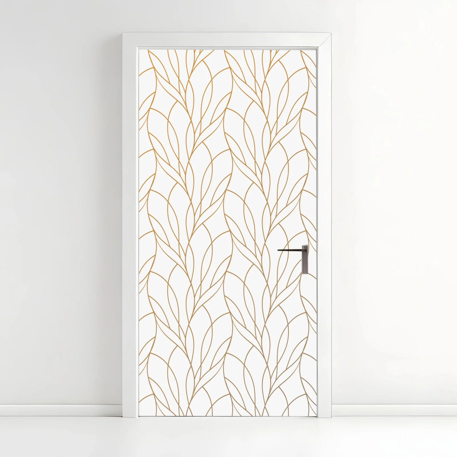 Türaufkleber Goldenes blattmuster auf weißem hintergrund