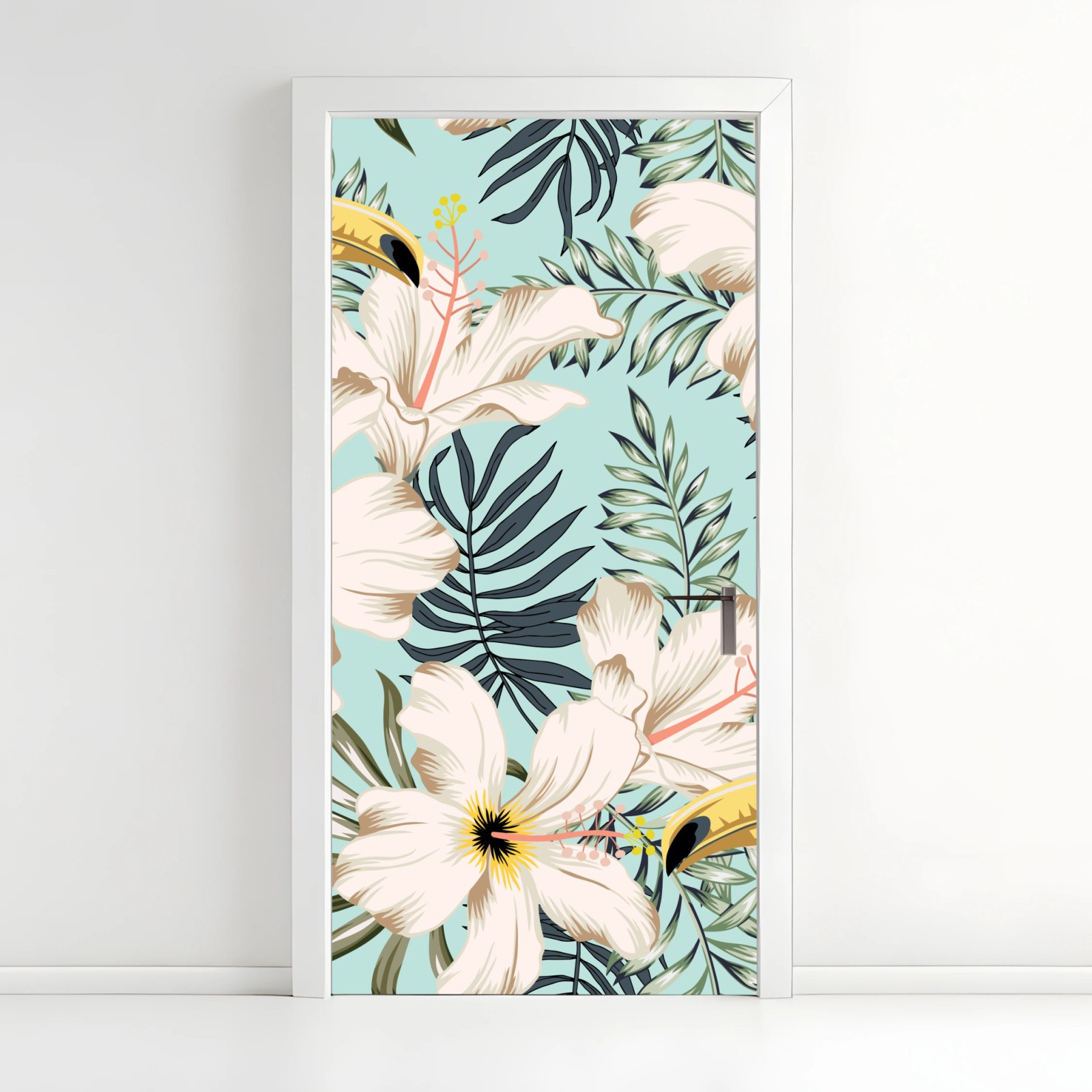 Türaufkleber Tropisches muster mit tukan und blumen