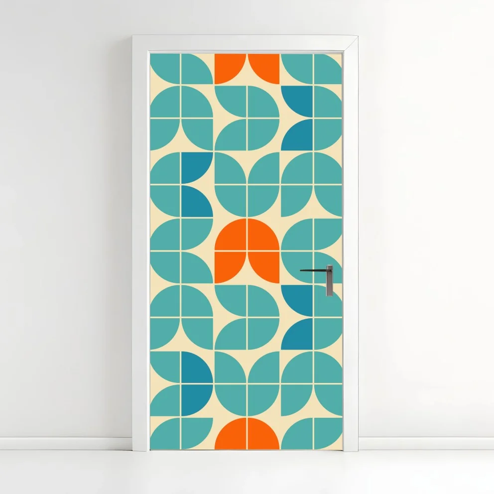 Türaufkleber Retro geometrisches fliesenmuster in türkis und orange