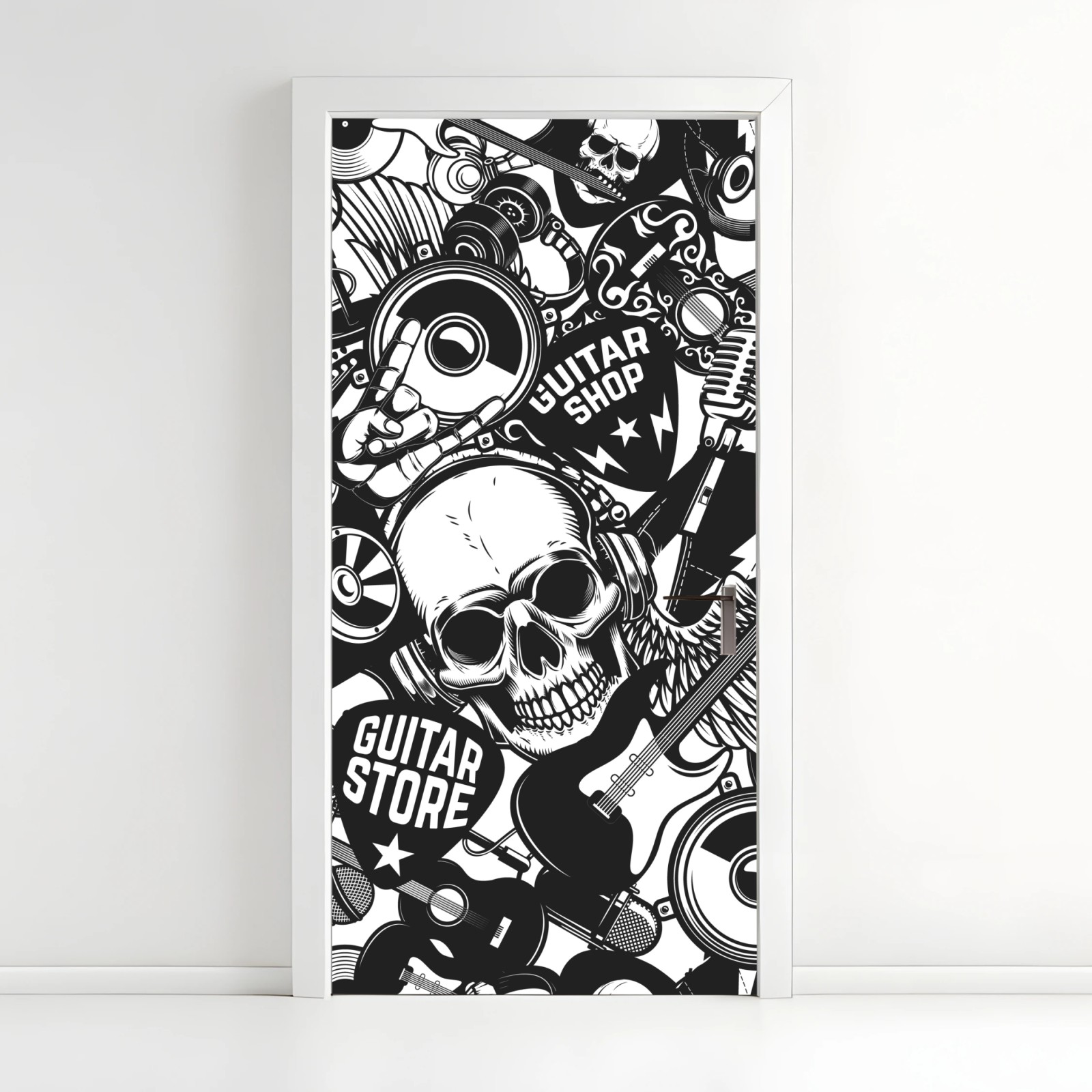Türaufkleber Rock-collage mit schädel und gitarre