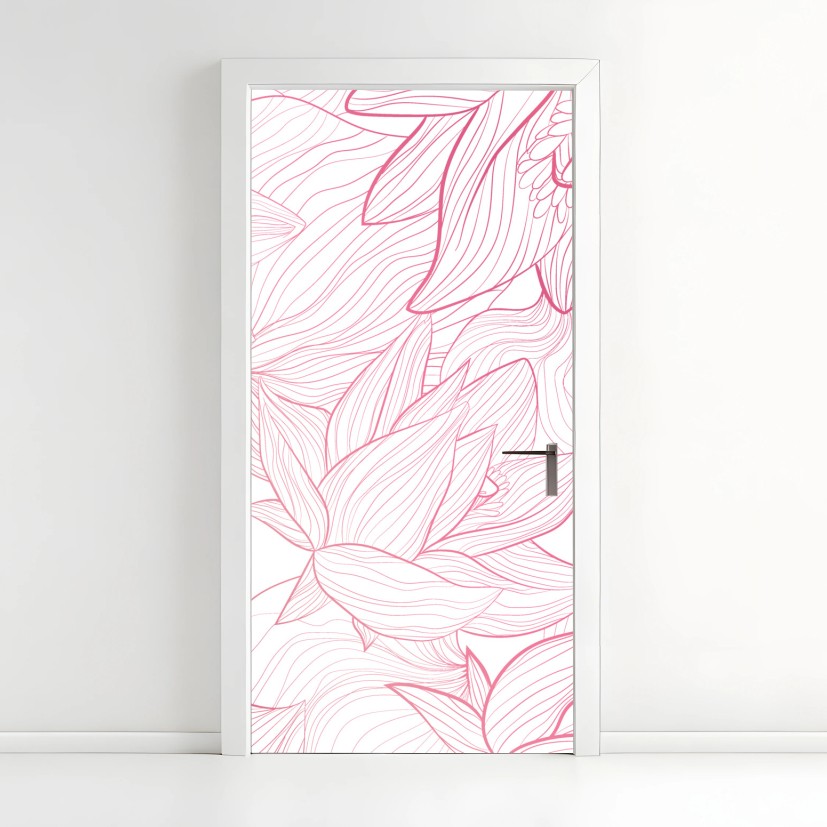 Türaufkleber Zartes rosa blumenlinienmuster