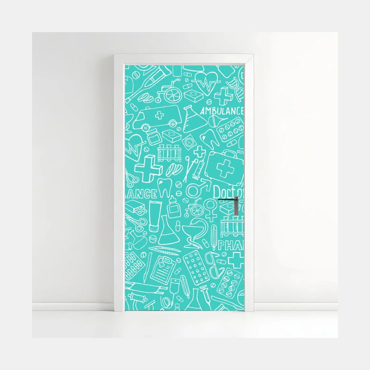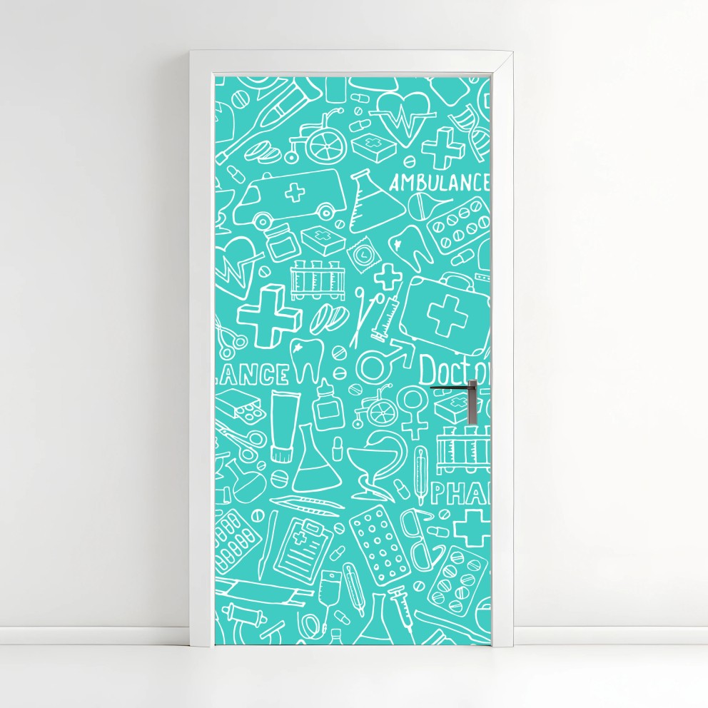 Türaufkleber Türkises nahtloses muster mit medizinischen icons