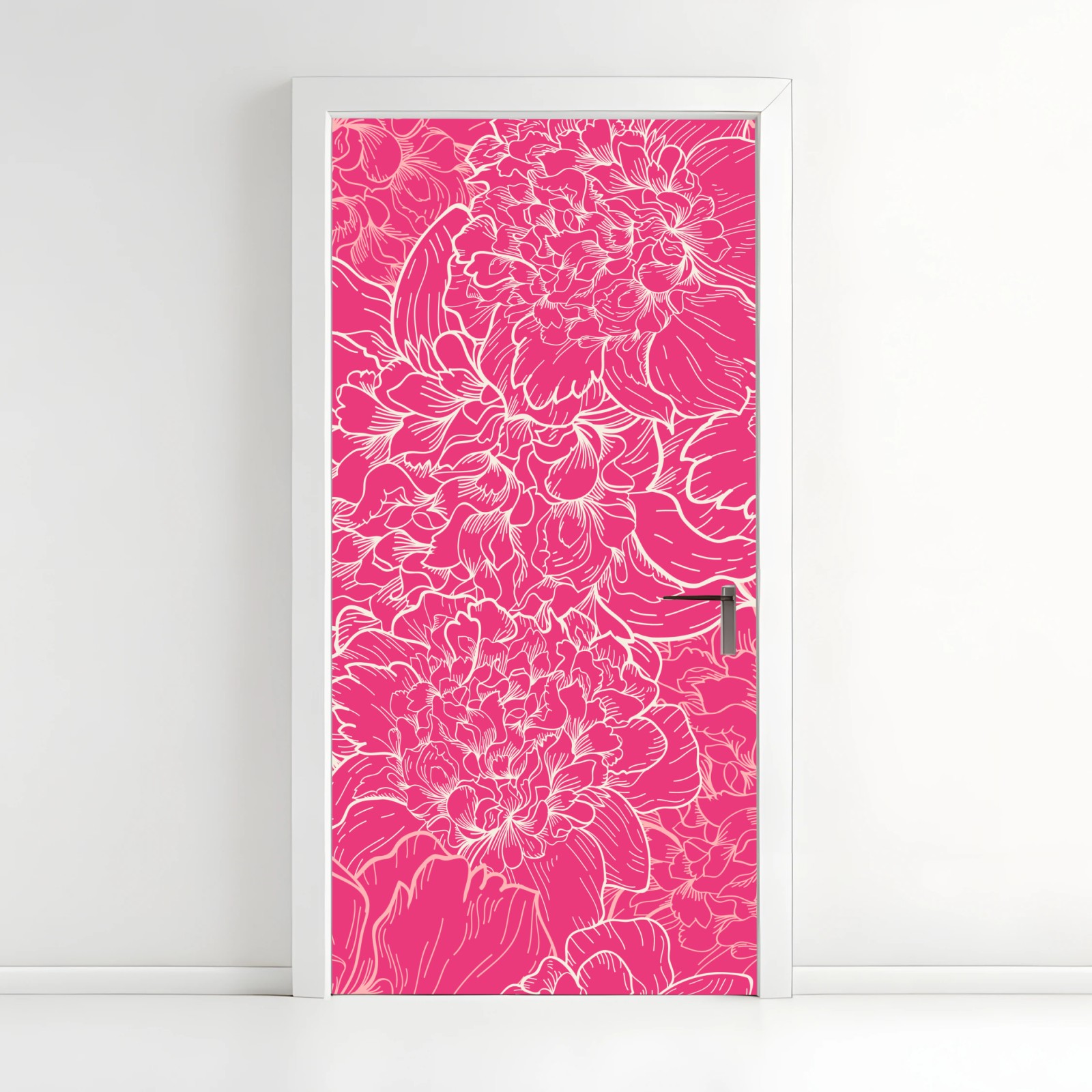 Türaufkleber Leuchtendes rosa pfingstrosenmuster