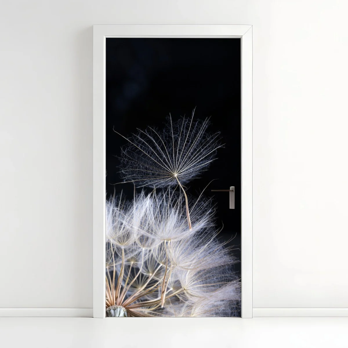 Türaufkleber Zarter löwenzahnsamen auf schwarzem hintergrund