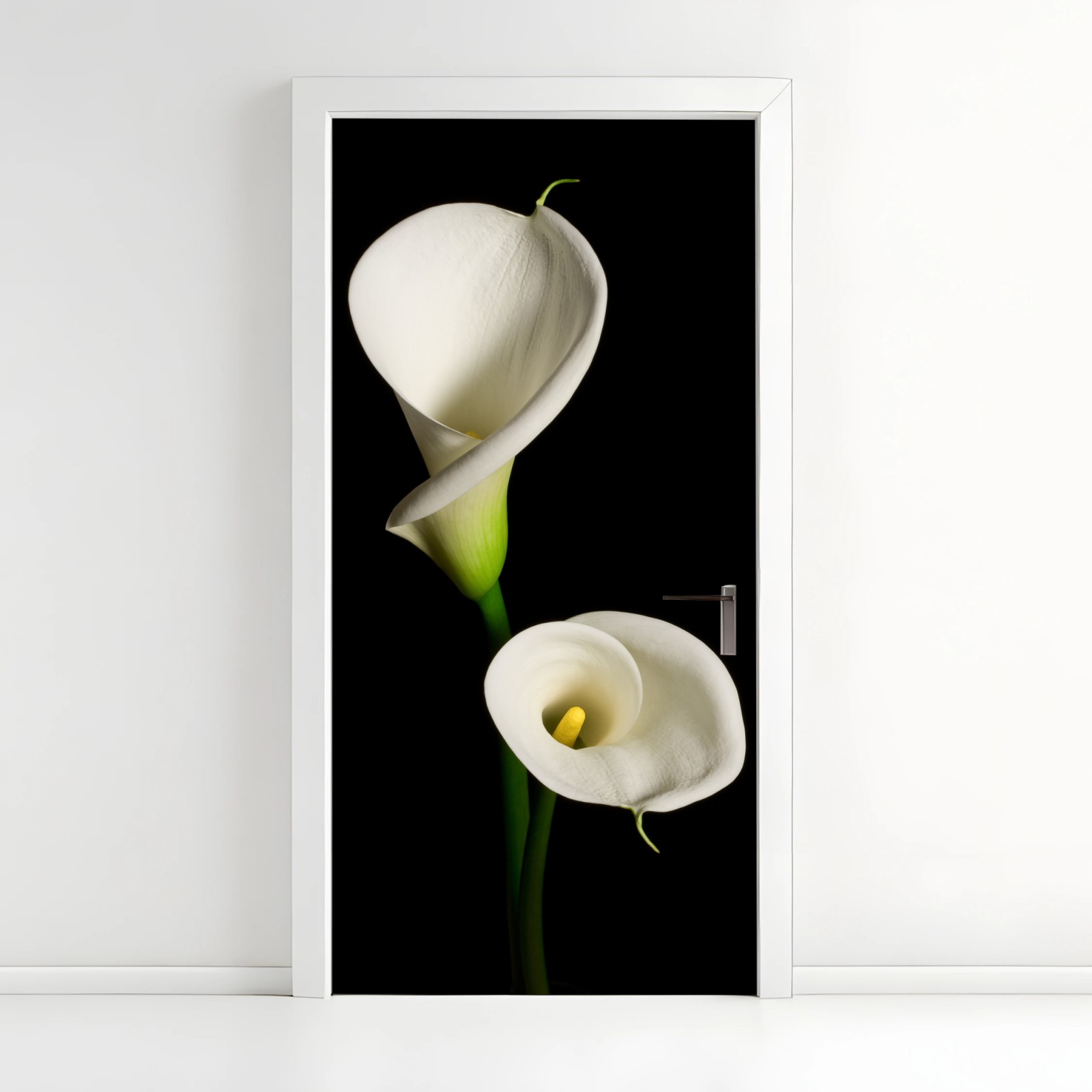 Türaufkleber Weiße calla vor schwarzem hintergrund